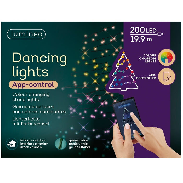 Die Lumineo LED-Lichterkette Dancing Lights sorgt mit ihrer intelligenten Steuerung und farbenprächtigen 200 RGB-LEDs für ein vielfältiges Beleuchtungserlebnis.