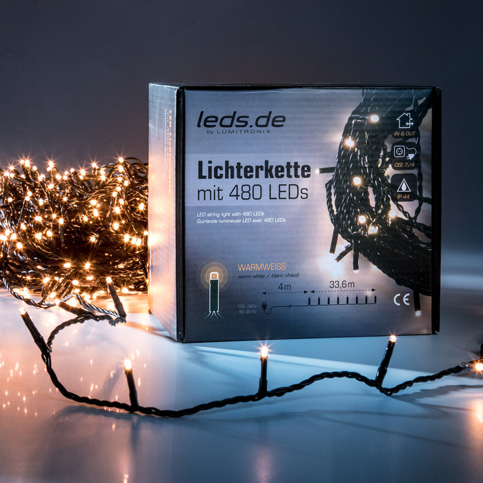 Die Lichterkette ist mit 480 warmweißen LEDs bestückt.